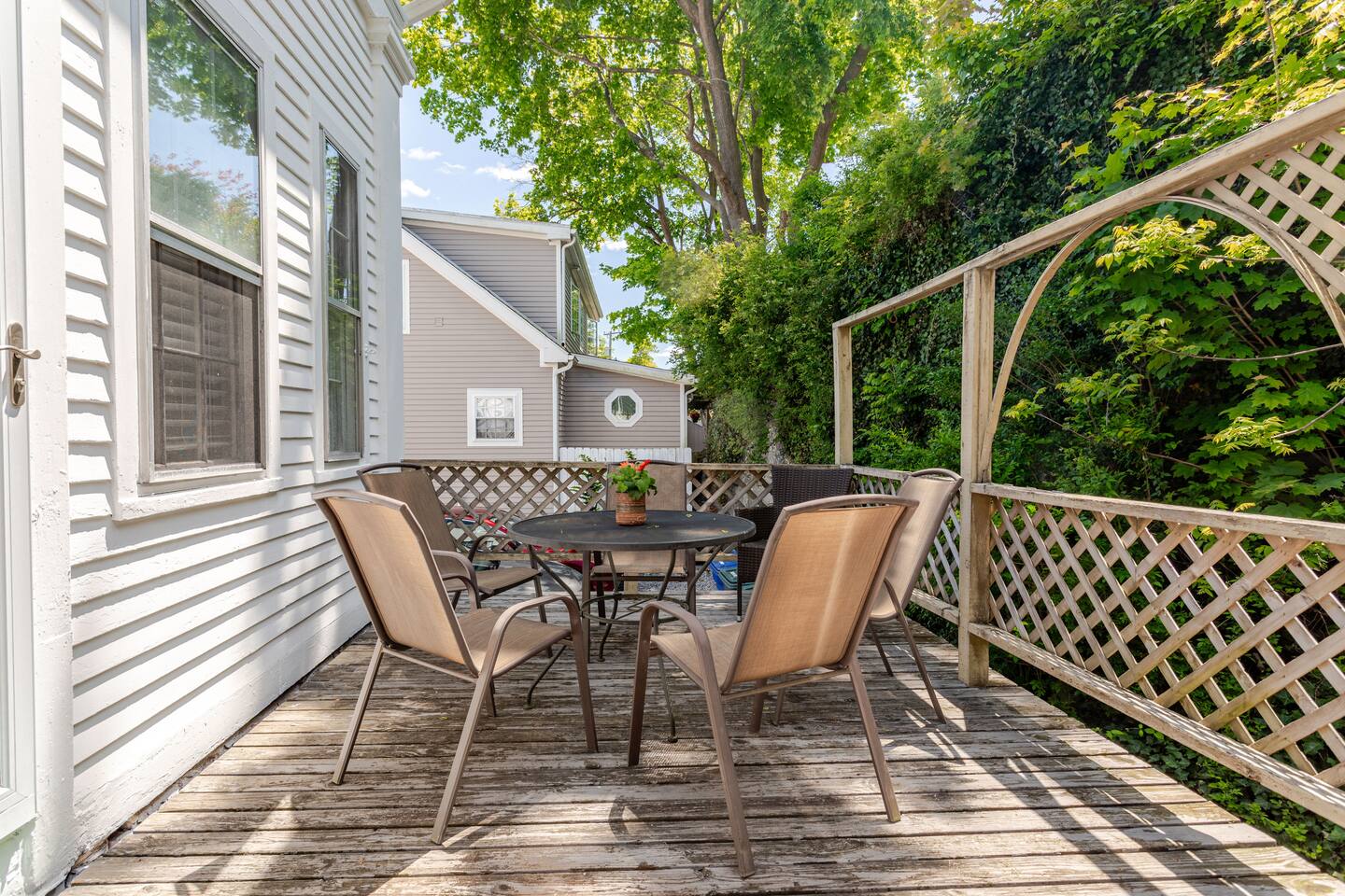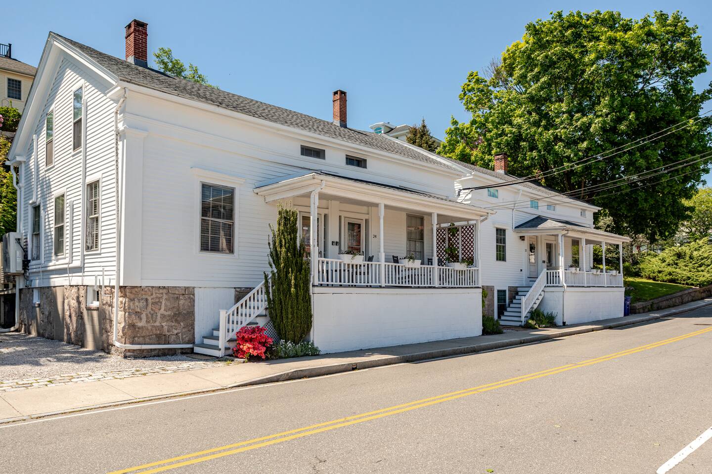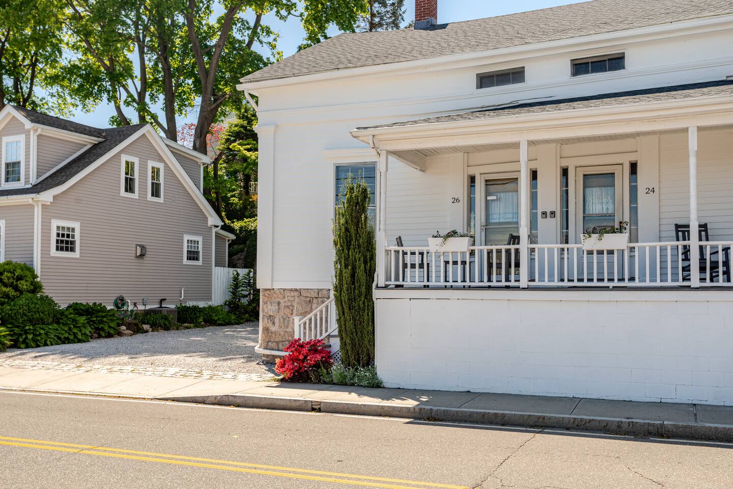 This 2 bedroom / 1 bathroom rental is located on Water Street in the heart of the Downtown Mystic Restaurant District and only a 2 minute walk from all of the shops on West Main Street, Mystic Pizza, Sift Bake Shop, The Oyster Club, the Historic Mystic Drawbridge and many other local attractions. The property features on-site parking for 2 vehicles, ice cold A/C's, fast WiFi, a front porch overlooking the Mystic River and a rear deck with seating, dining table and gas grill.